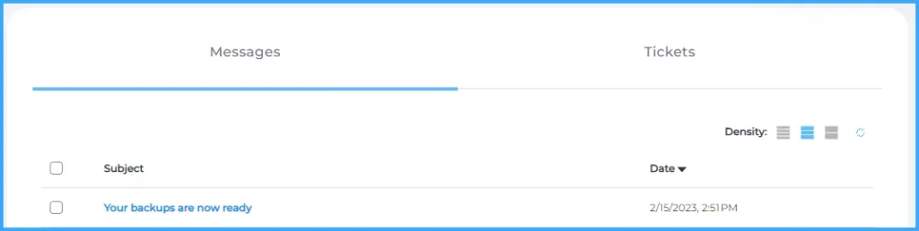 Bước 3: Chờ hệ thống tiến hành backup dữ liệu, thời gian nhanh hay lâu còn tùy thuộc vào dữ liệu trên website của bạn nhiều hay ít. Để biết quá trình backup đã hoàn tất hay chưa, bạn hãy nhấn vào phần Messages bên trái màn hình.