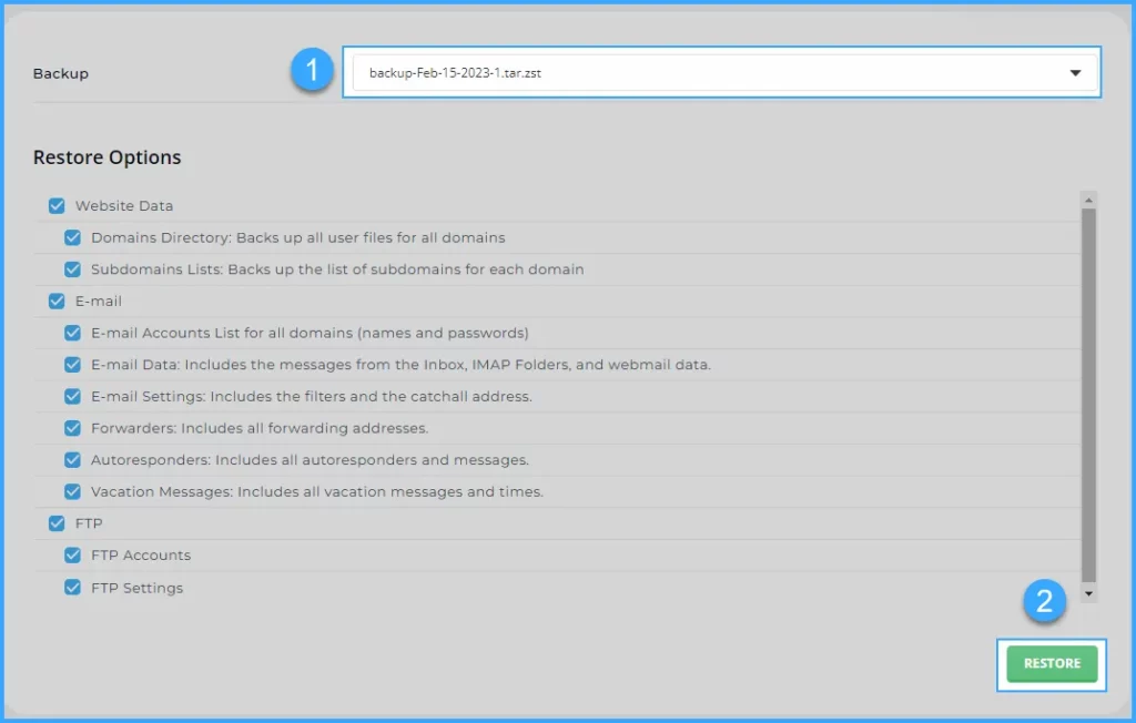 Hướng dẫn restore dữ liệu trên DirectAdmin