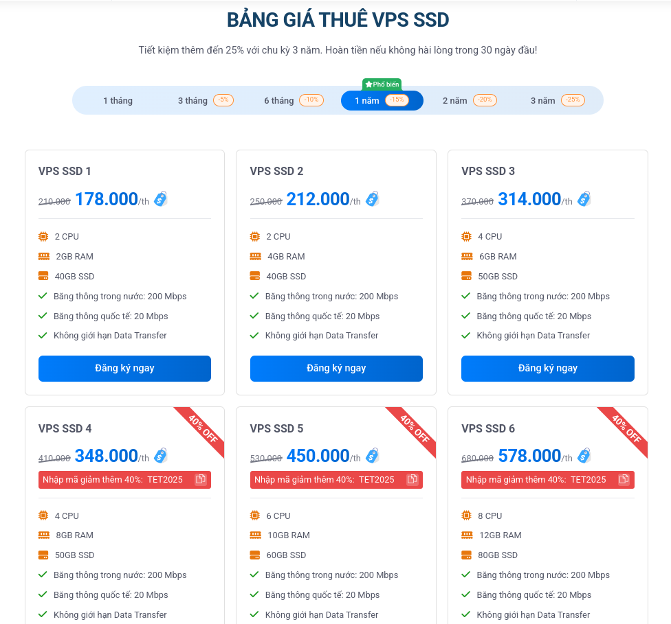- Linh hoạt, dễ nâng cấp: Vietnix cung cấp đa dạng gói cấu hình (từ VPS Cheap 1 đến VPS Cheap 6), giá chỉ từ 151.000 VNĐ/tháng, để khách hàng có thể dễ dàng nâng cấp theo nhu cầu.