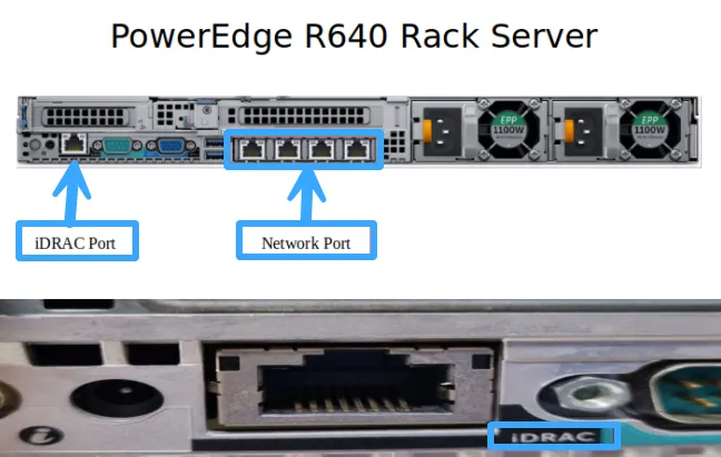 - Network Port: Các cổng mạng thông thường của máy chủ (ví dụ: PowerEdge R640 Rack Server).